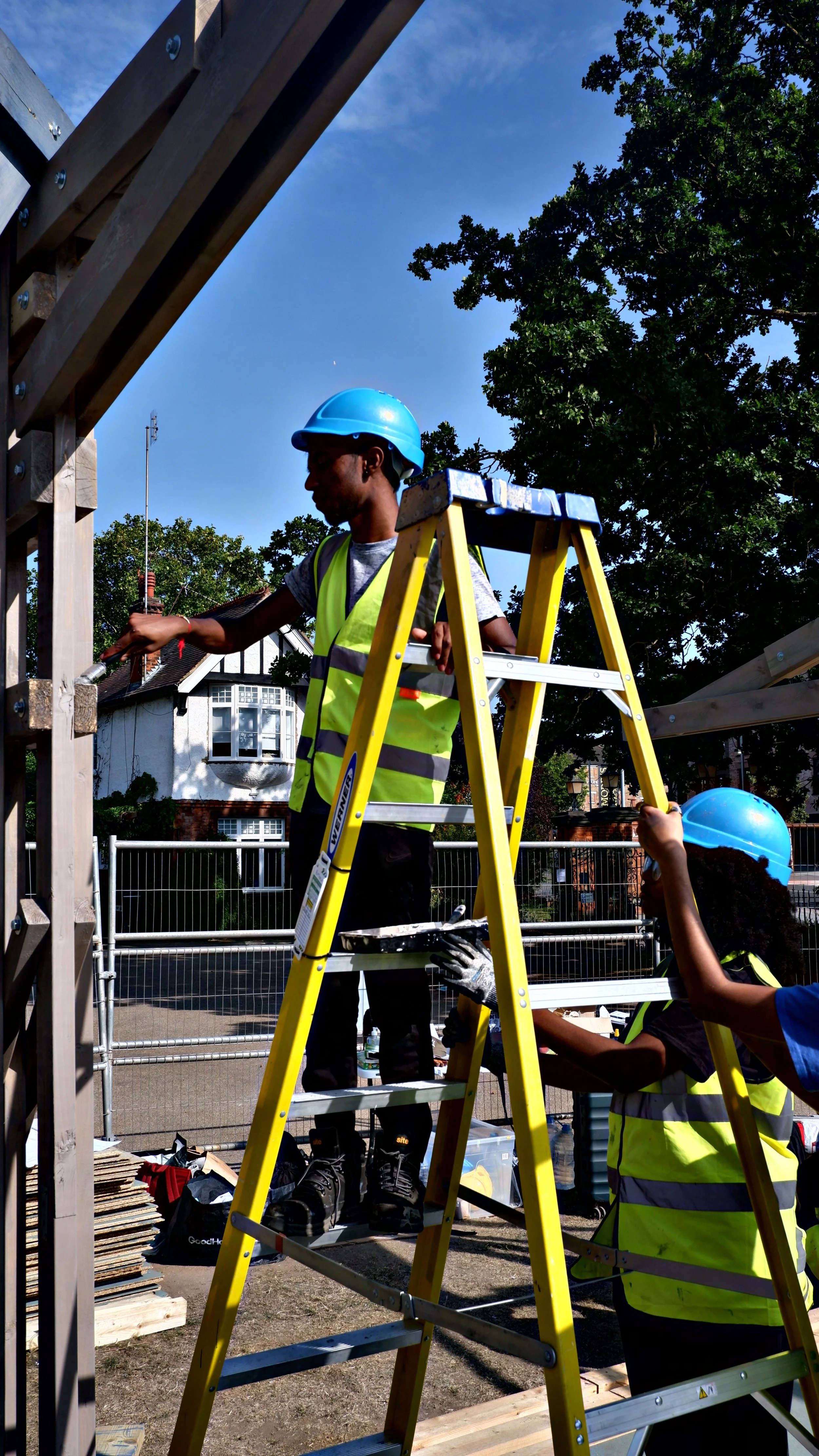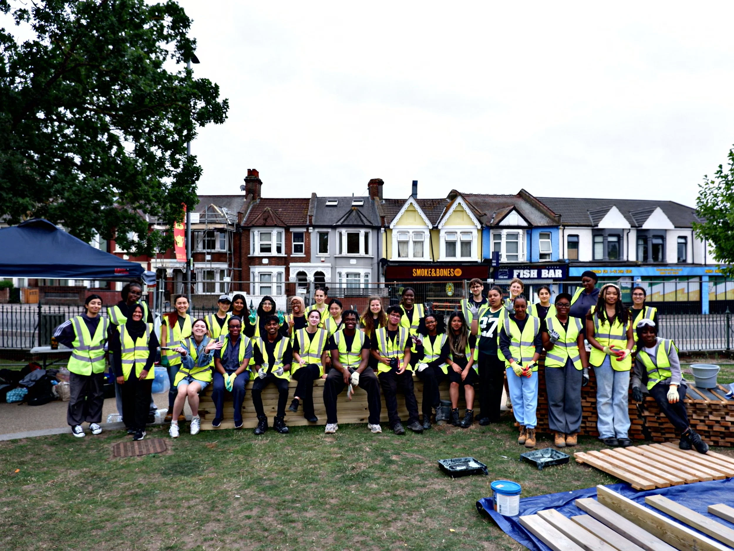 For it’s third iteration, the People’s Pavilion has once again transformed ideas into reality — reclaiming public space to create free access to the arts and culture for all. Built in just eight days by over 70 volunteers, the pavilion stood proudly at the William Morris Gallery in Waltham Forest, London, a powerful testament to the creativity, resilience, and vision of young Londoners.