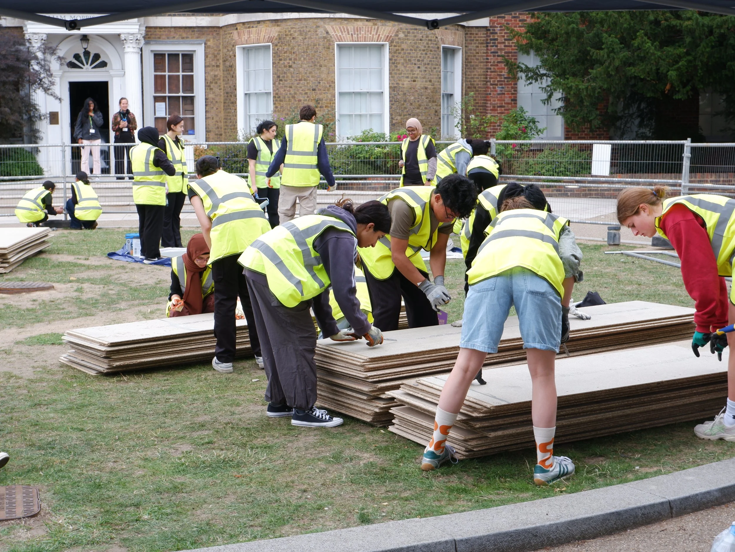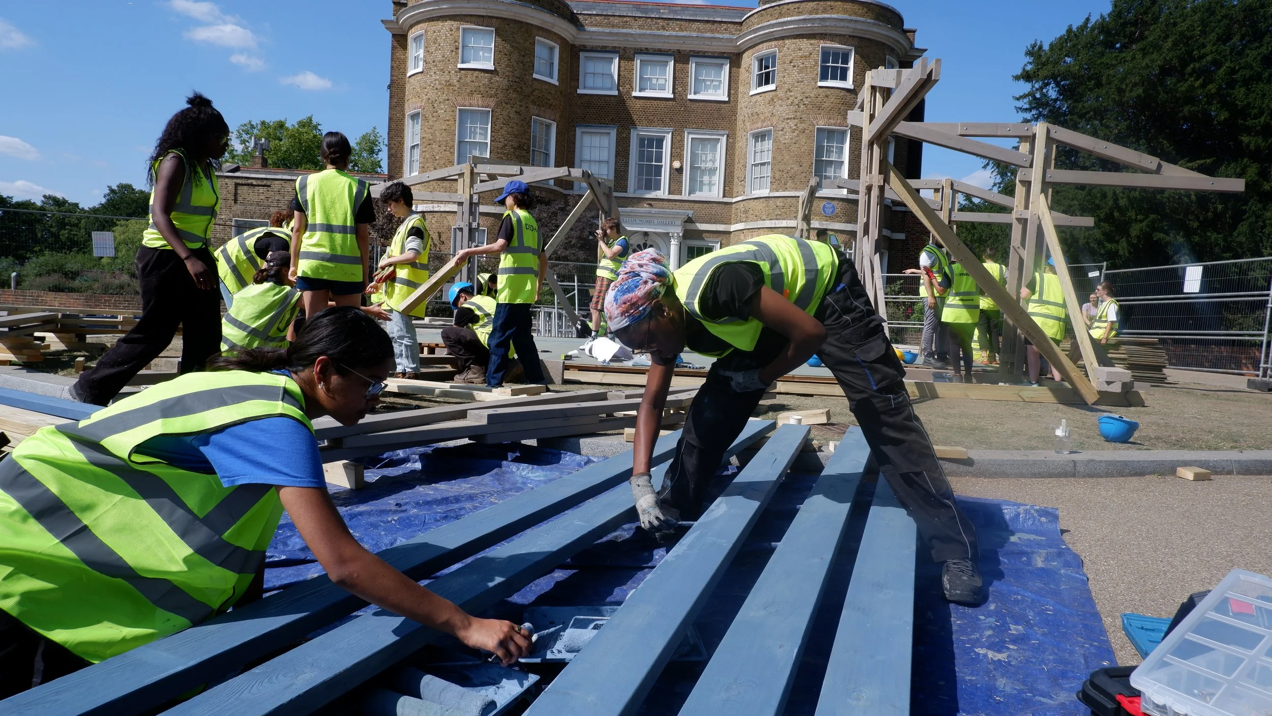 The People’s Pavilion is built by the community – with over 70 volunteers taking part, from young people to industry professionals and local residents, coming together to make it happen. The build process is as much a part of the cultural programming as the events themselves, echoing William Morris’s belief that the act of making is as valuable as the finished work.